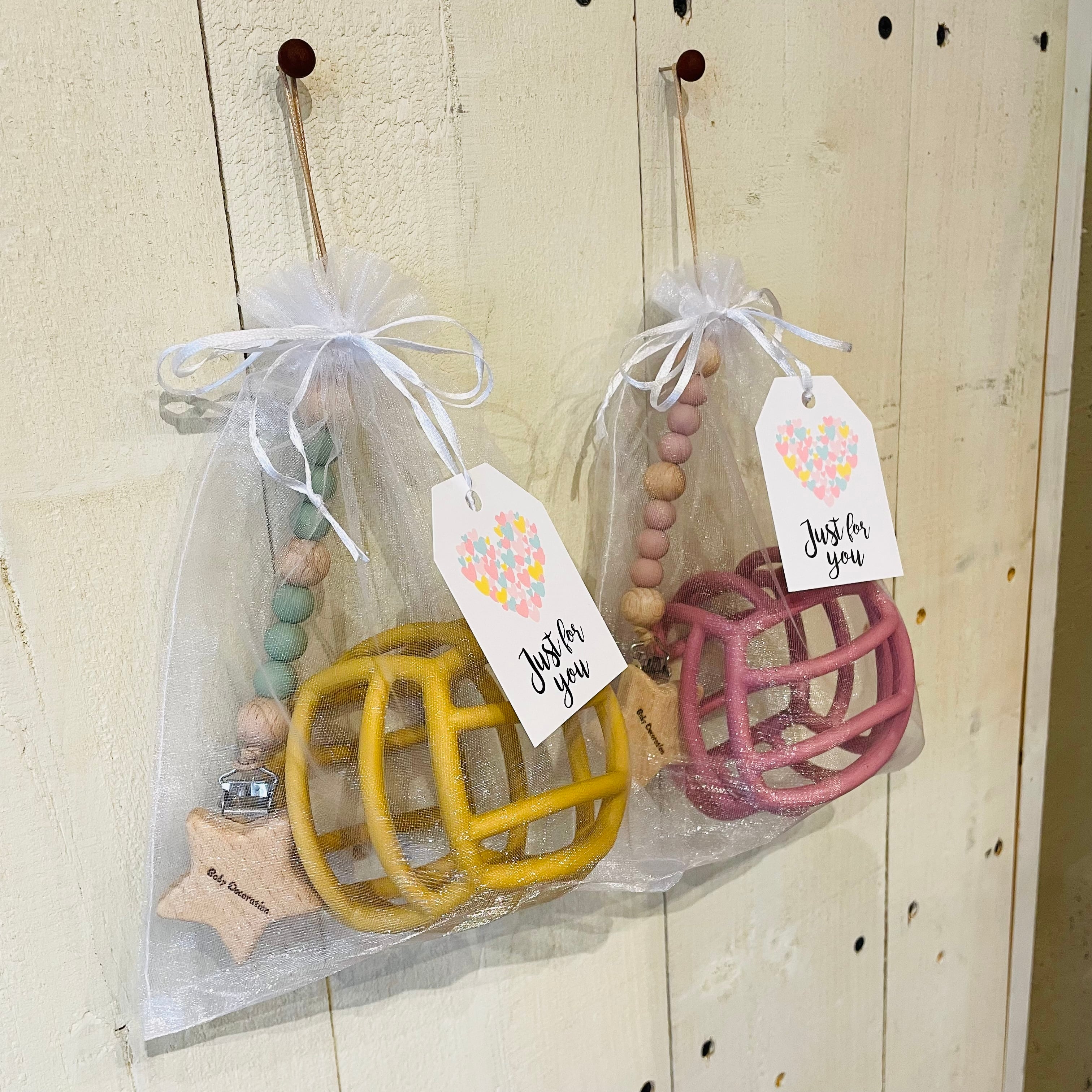 やわらかいシリコンボールと、シリコンのトイホルダーがもらって嬉しいセットに!